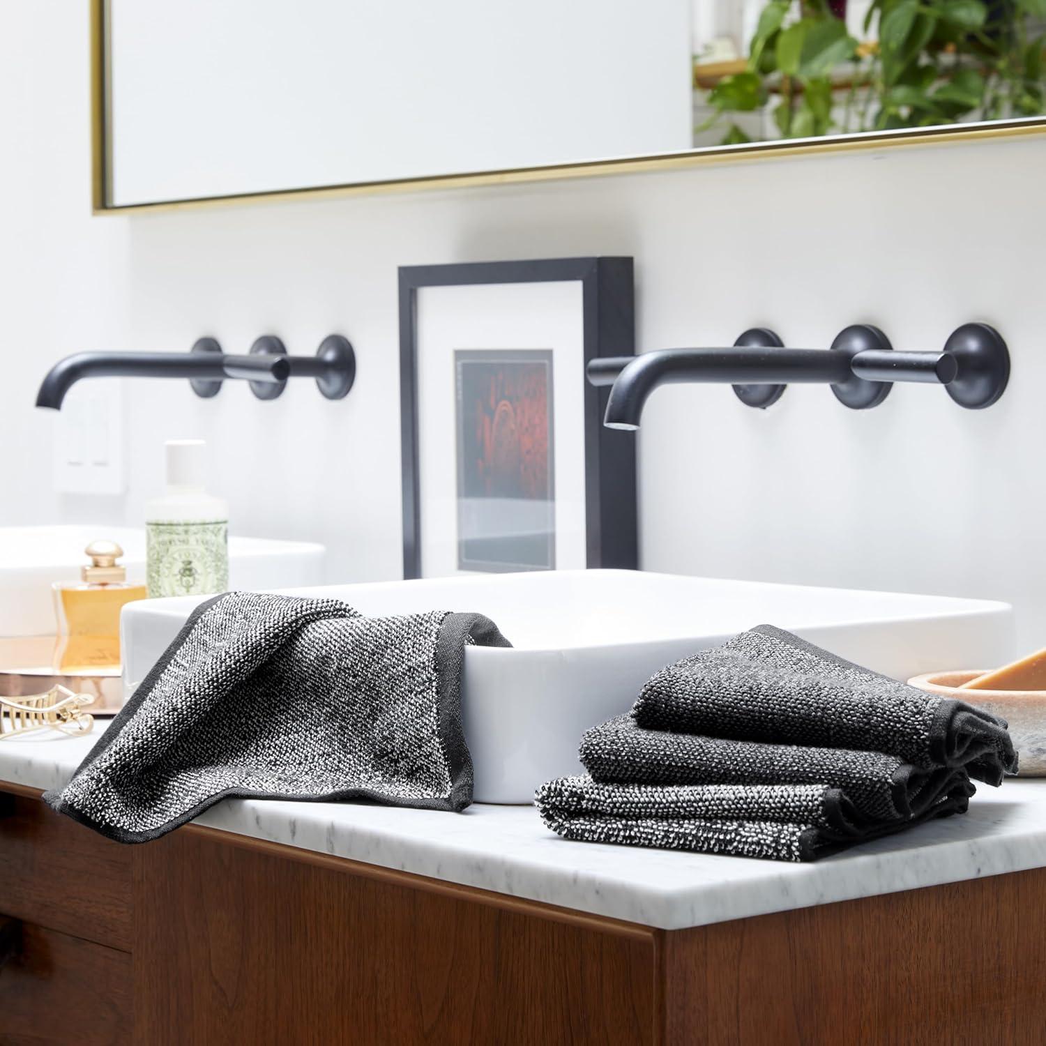 Brooklinen Classic Turkish Cotton Washcloths – Marled Black, Set of 2 – 100% Cotton Towels, Soft, Highly Absorbent, Quick-Drying, Durable, Ideal for Daily Face, Body Cleansing and More(Marled Black)