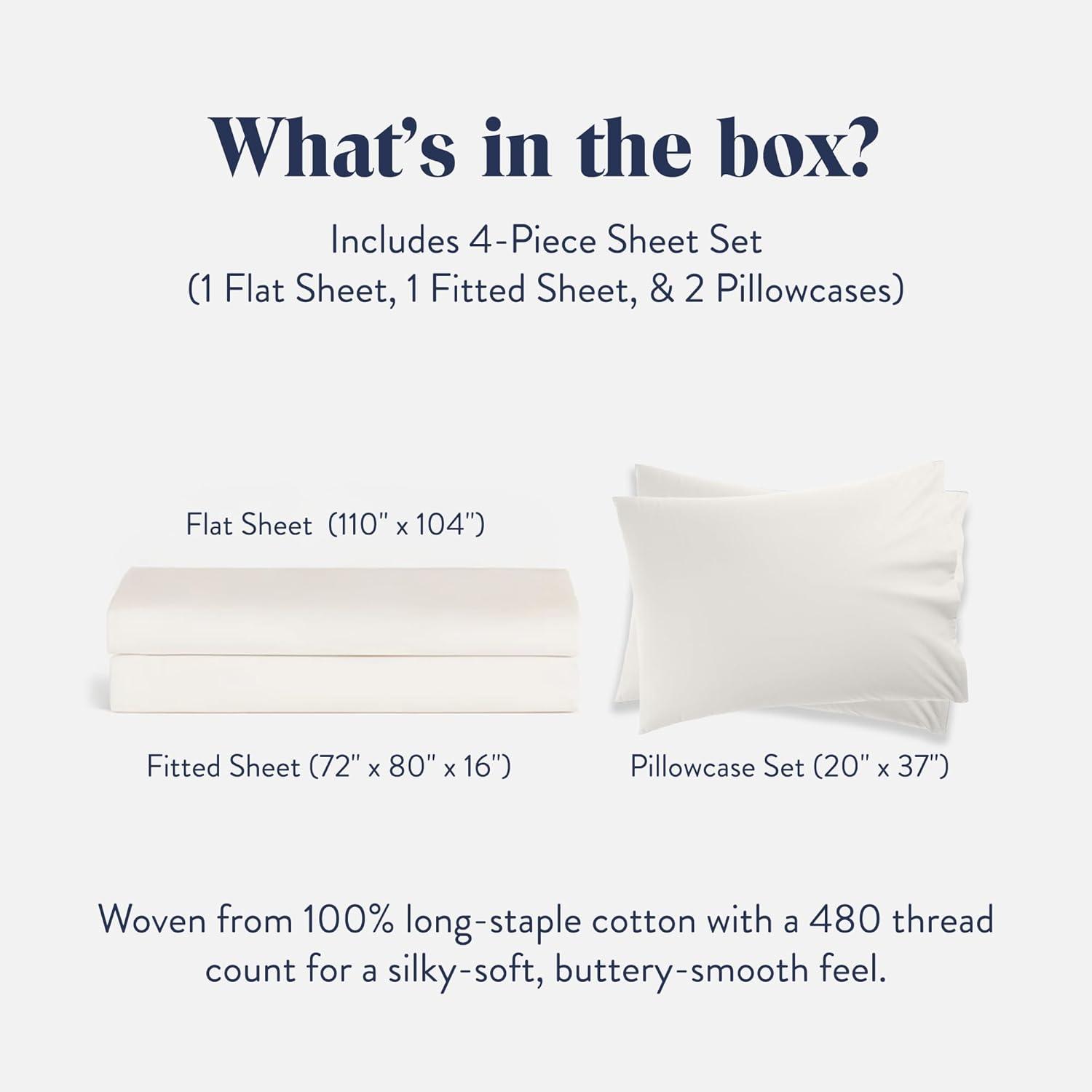 LUXURY SATEEN 4-PIECE SHEET SET: Featuring a rich, buttery-smooth weave, our best-selling Luxe Sateen Sheets are the ultimate bedding upgrade. Perfect for elevating your sheet game. These bed sheets feature a luxurious 480 thread count and a slightly luminous finish. Start styling your bed with the Core Sheet Set, which includes 1 fitted sheet, 1 flat sheet, and 2 pillowcases.