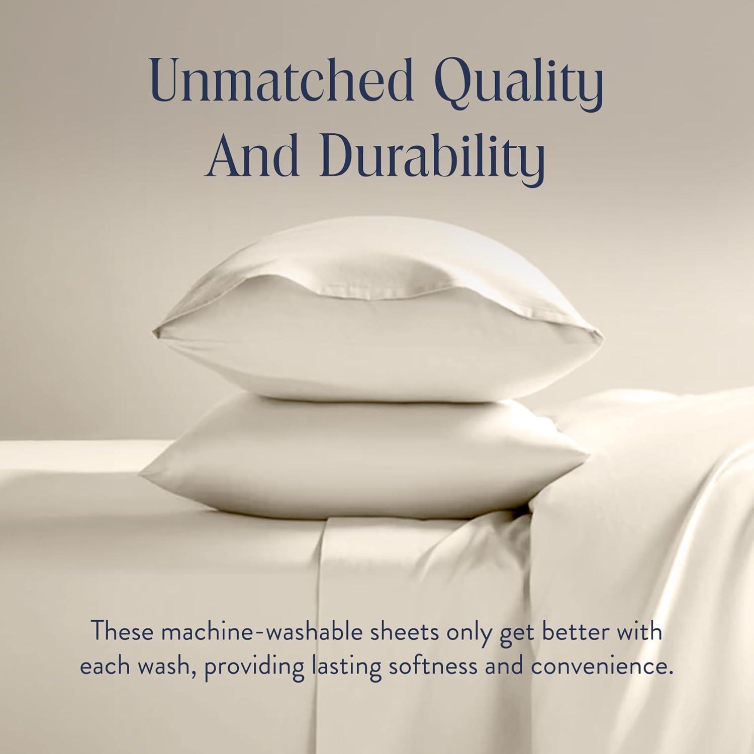 Brooklinen Luxury Sateen 4 Piece Sheet Set – 100% Cotton Bed Sheets, Soft & Durable Queen Size Sheets Set in Cream, Oeko-TEX Certified Bedding Set, 1 Fitted Sheet, 1 Flat Sheet, 2 Pillowcases(Cream)