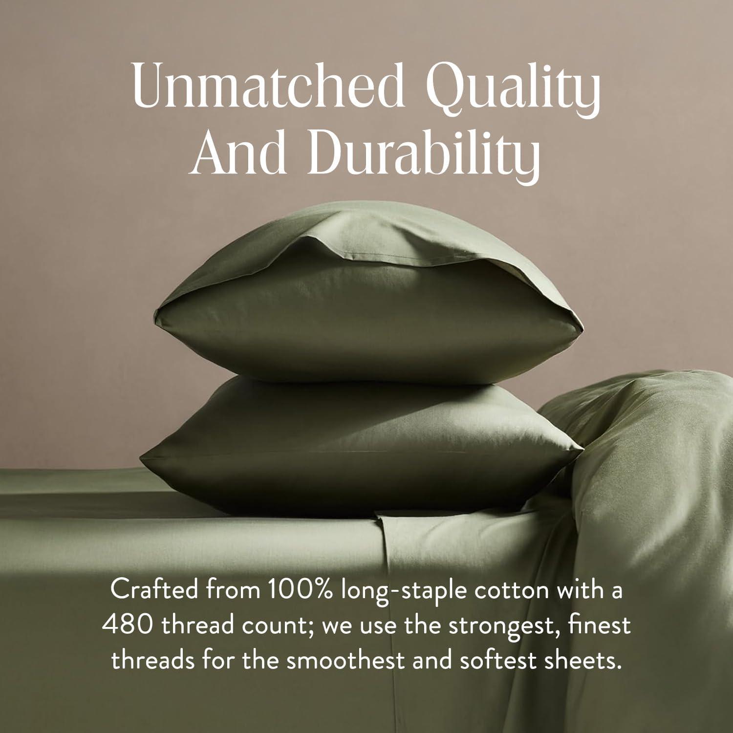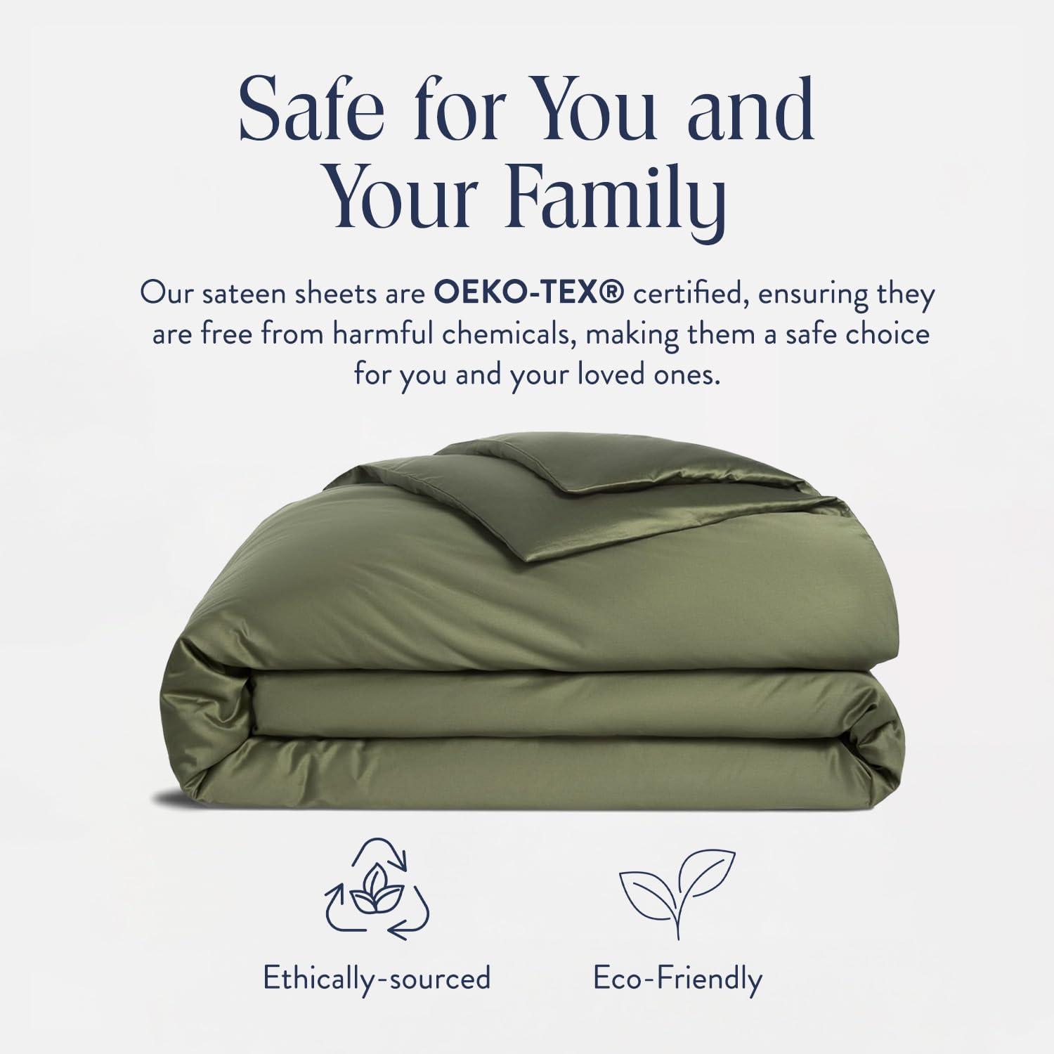 Brooklinen Luxury Sateen Duvet Cover – 100% Cotton, King/California King Size in White with Extra-Long Corner Ties and Button Closure – Best King/Cali King Duvet Covers(Fresh Moss)