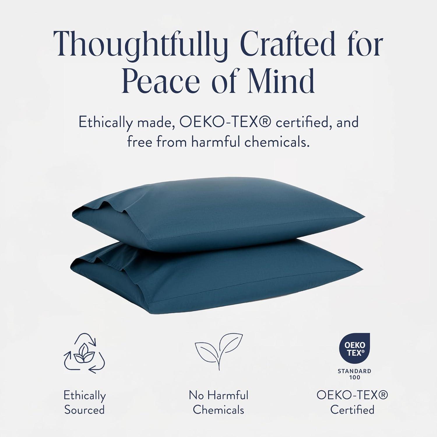 CERTIFIED SAFE: Rest easy knowing your Brooklinen Luxury Sateen Pillowcases are made from 100% Long Staple Cotton and are OEKO-TEX certified. This certification ensures that the fabric has been tested for harmful substances, ensuring it’s free from chemicals that could be harmful to your health.