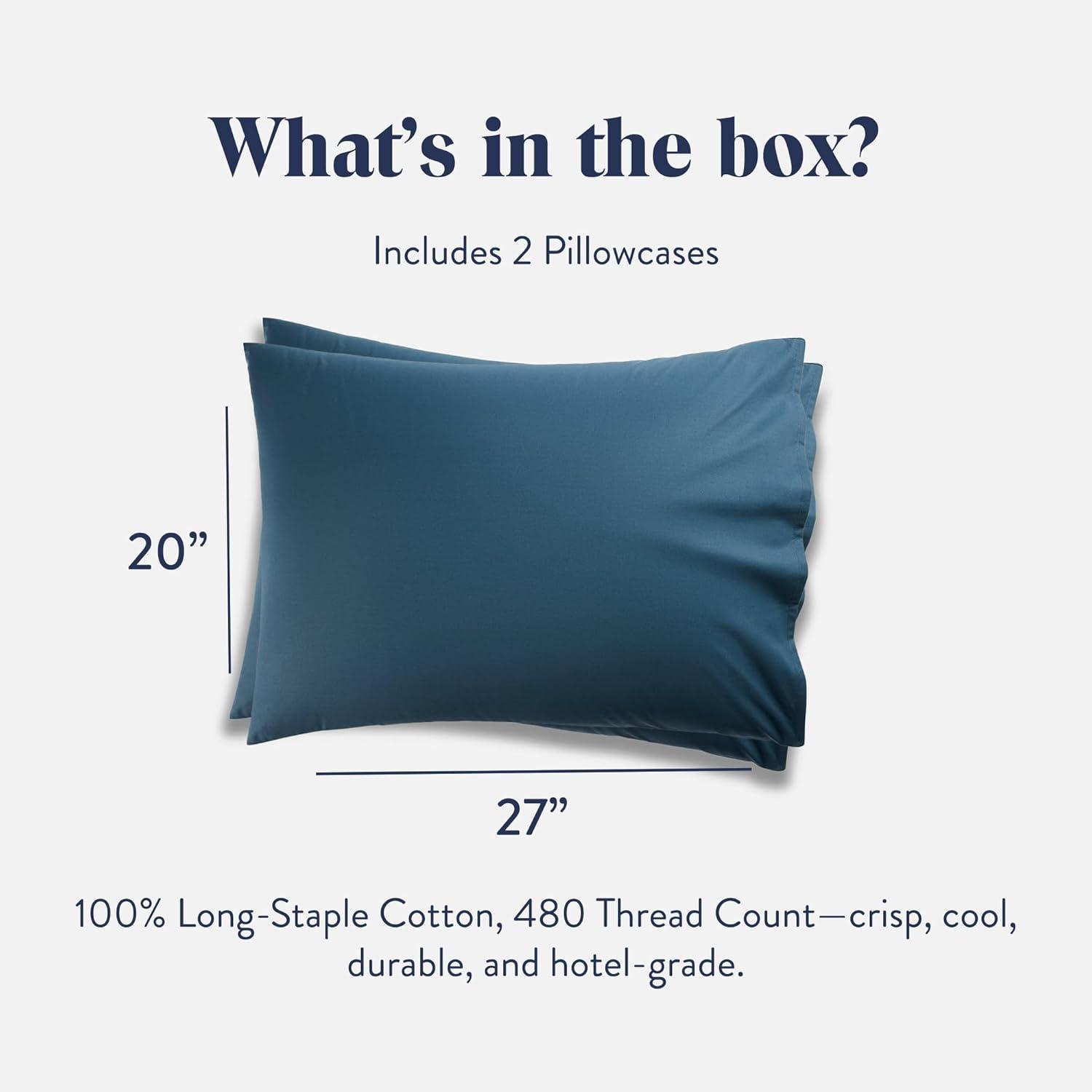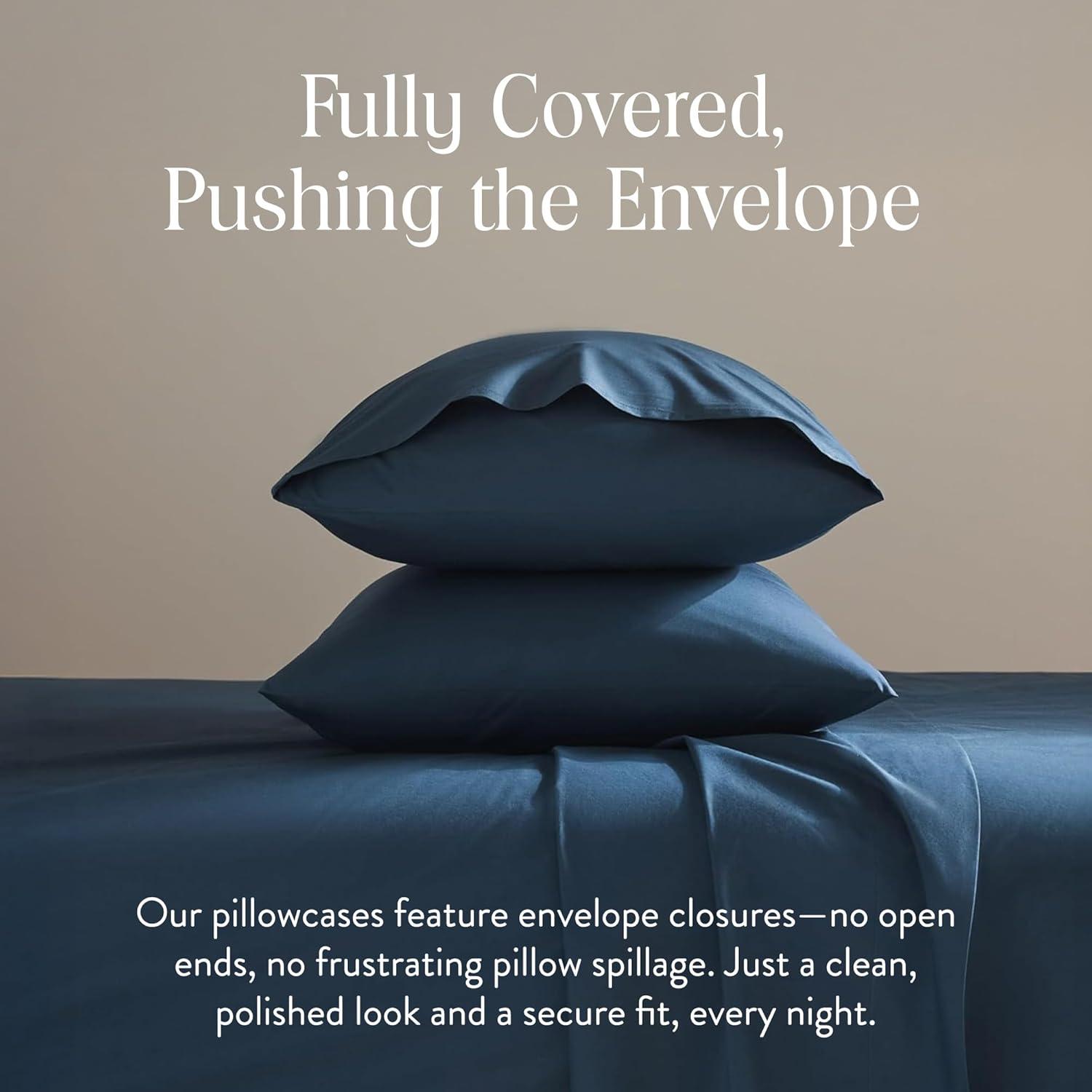 Brooklinen Luxury Sateen Pillowcases – Set of 2, 100% Long Staple Cotton with Envelope Closure, Smooth Fabric, Soft & Durable, Machine Washable – Standard Size (Cream)(Abyss)