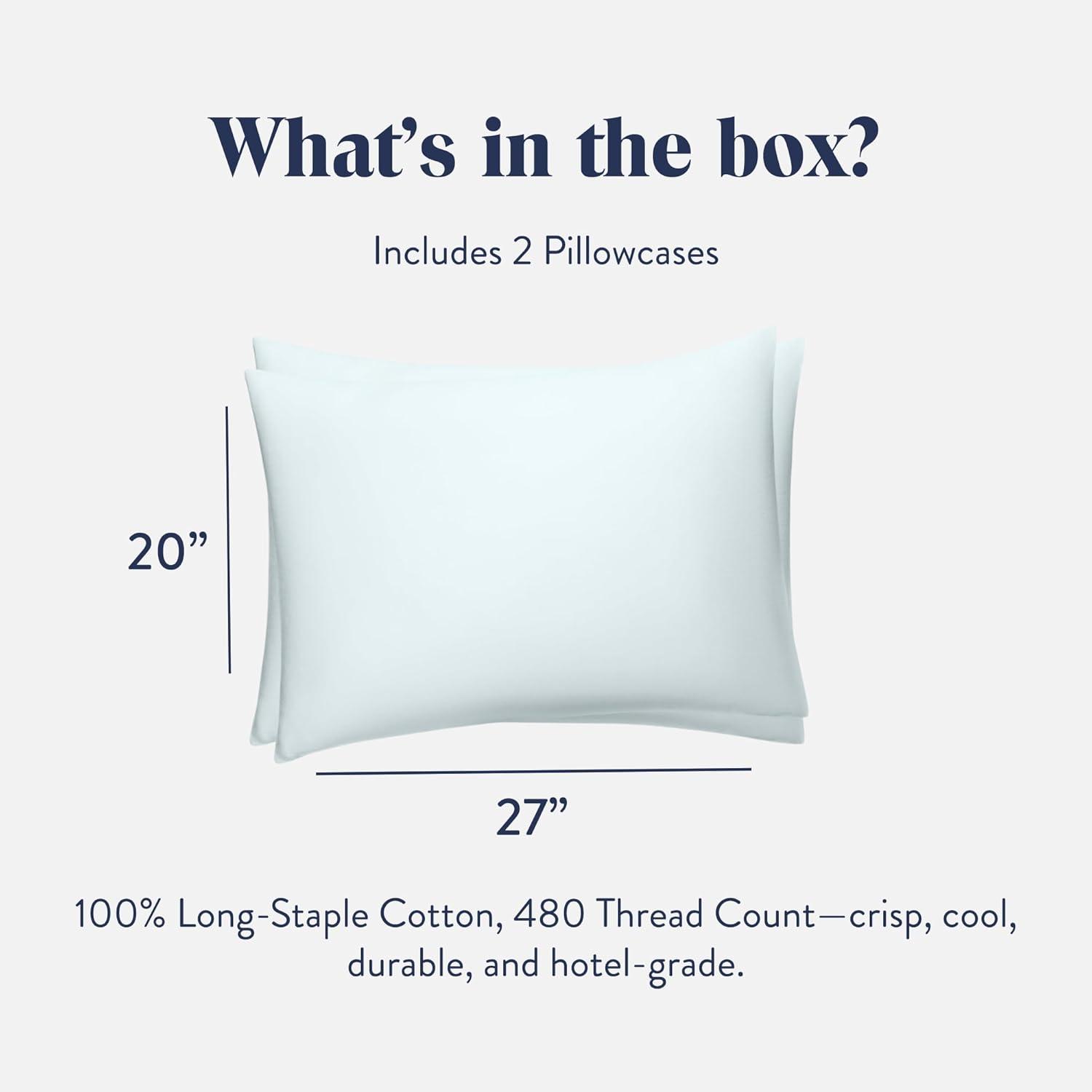 STANDARD SIZE: Featuring a rich, buttery-smooth sateen weave, our pillowcases are ideal for elevating your bedding game. With a luxurious 480 thread count and a slightly luminous finish, they offer an exceptionally soft feel. Designed to fit standard pillows, each pillowcase measures 27″L x 20″W and comes in a set of 2.