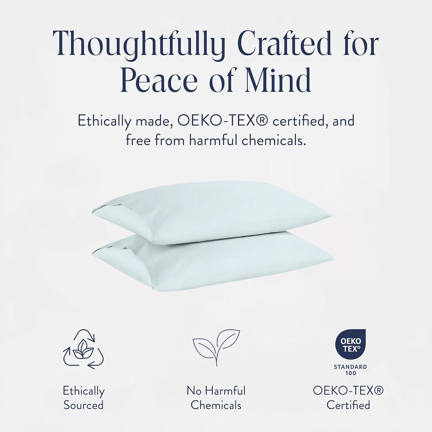 CERTIFIED SAFE: Rest easy knowing your Brooklinen Luxury Sateen Pillowcases are made from 100% Long Staple Cotton and are OEKO-TEX certified. This certification ensures that the fabric has been tested for harmful substances, ensuring it’s free from chemicals that could be harmful to your health.
