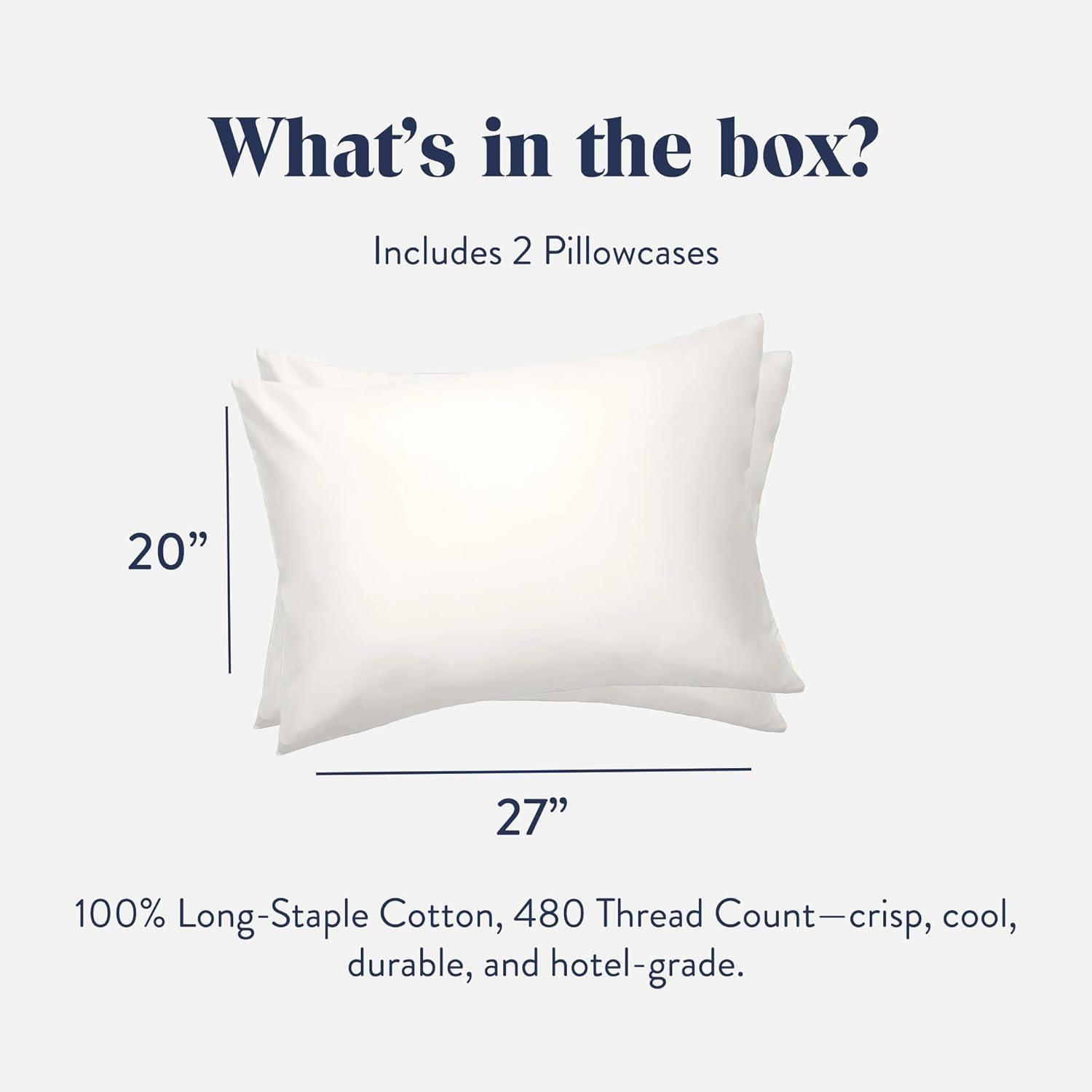 STANDARD SIZE: Featuring a rich, buttery-smooth sateen weave, our pillowcases are ideal for elevating your bedding game. With a luxurious 480 thread count and a slightly luminous finish, they offer an exceptionally soft feel. Designed to fit standard pillows, each pillowcase measures 27″L x 20″W and comes in a set of 2.