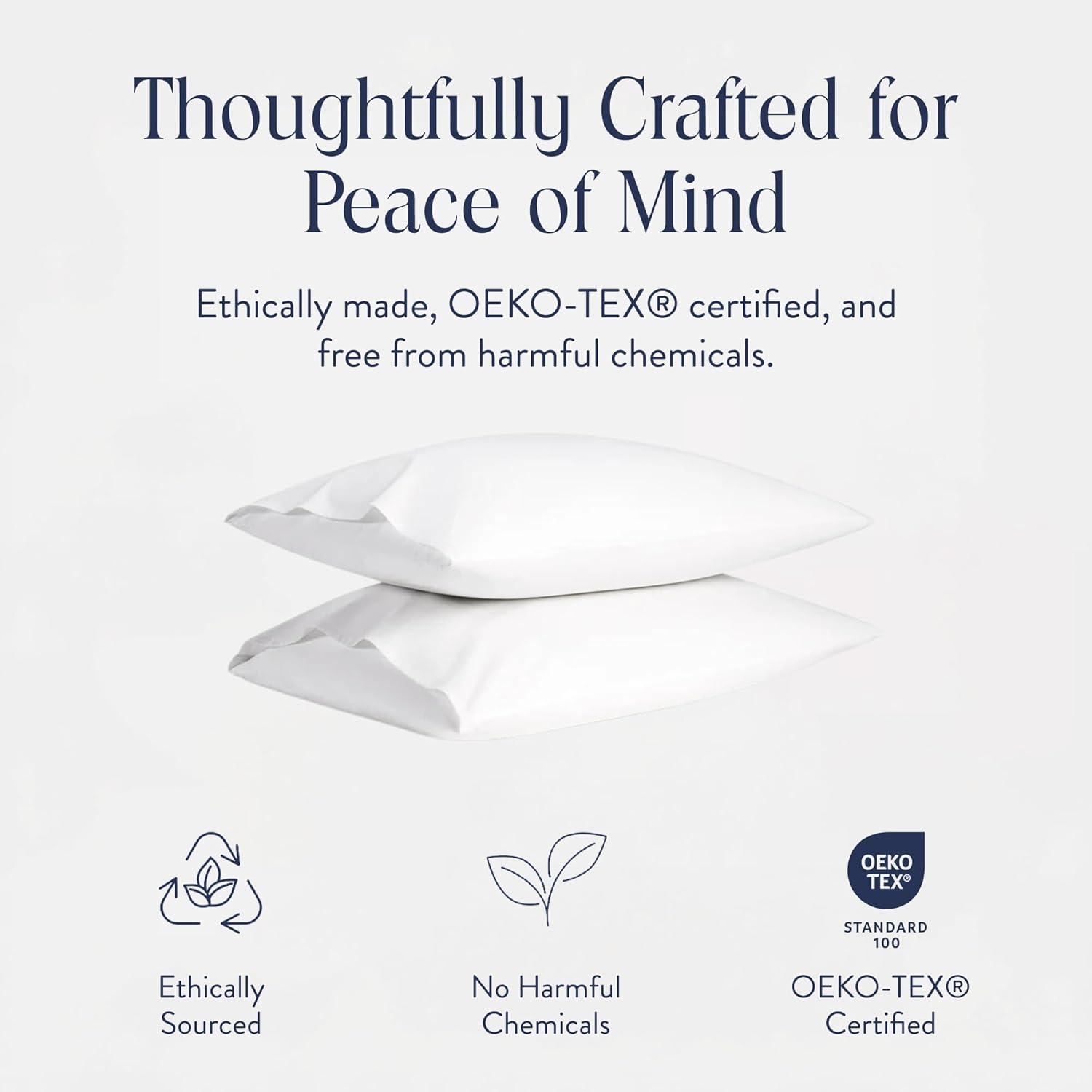 CERTIFIED SAFE: Rest easy knowing your Brooklinen Luxury Sateen Pillowcases are made from 100% Long Staple Cotton and are OEKO-TEX certified. This certification ensures that the fabric has been tested for harmful substances, ensuring it’s free from chemicals that could be harmful to your health.