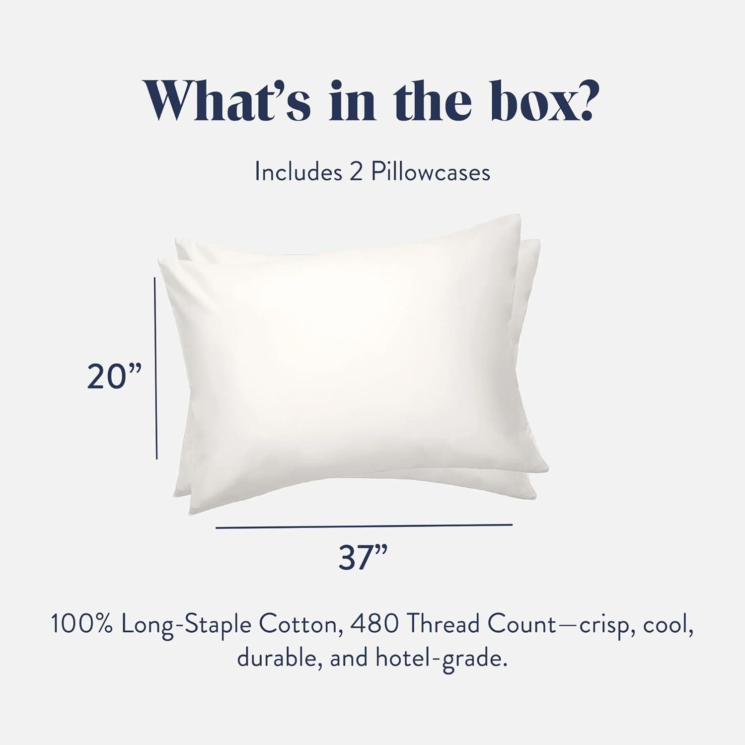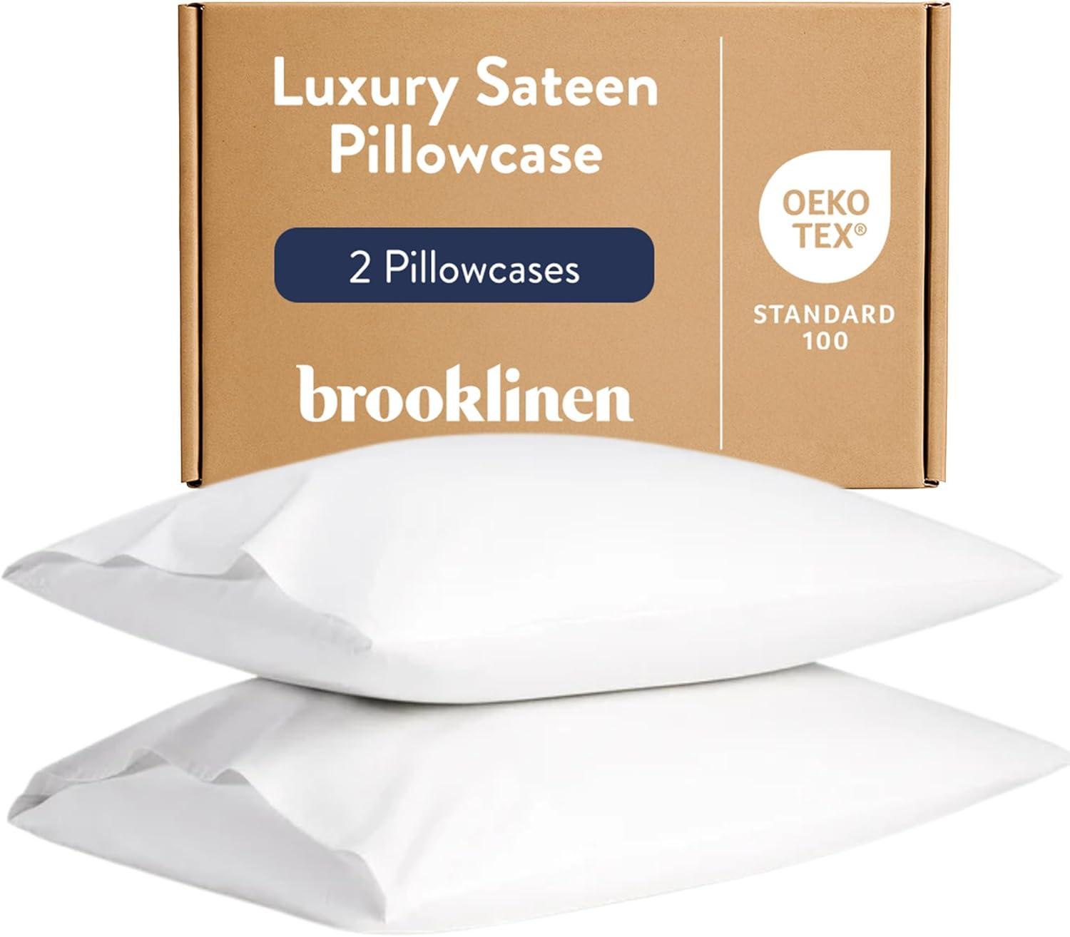 Brooklinen Luxury Sateen Pillowcases – Set of 2, 100% Long Staple Cotton with Envelope Closure, Smooth Fabric, Soft & Durable, Machine Washable – Standard Size (Cream)(White)