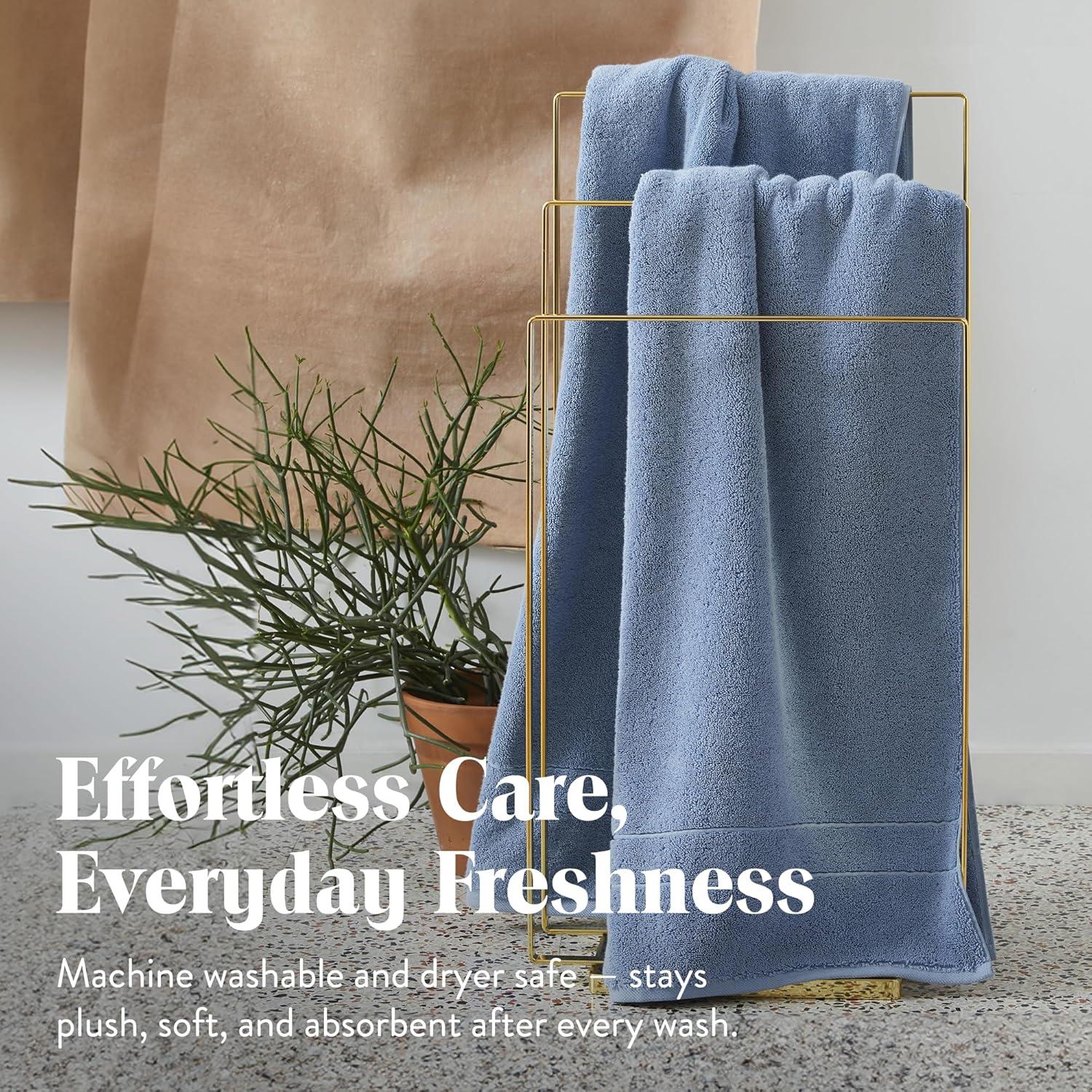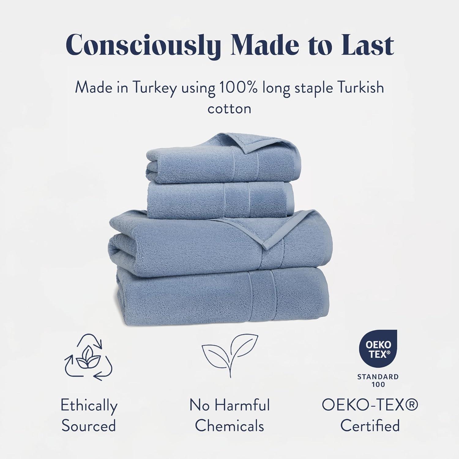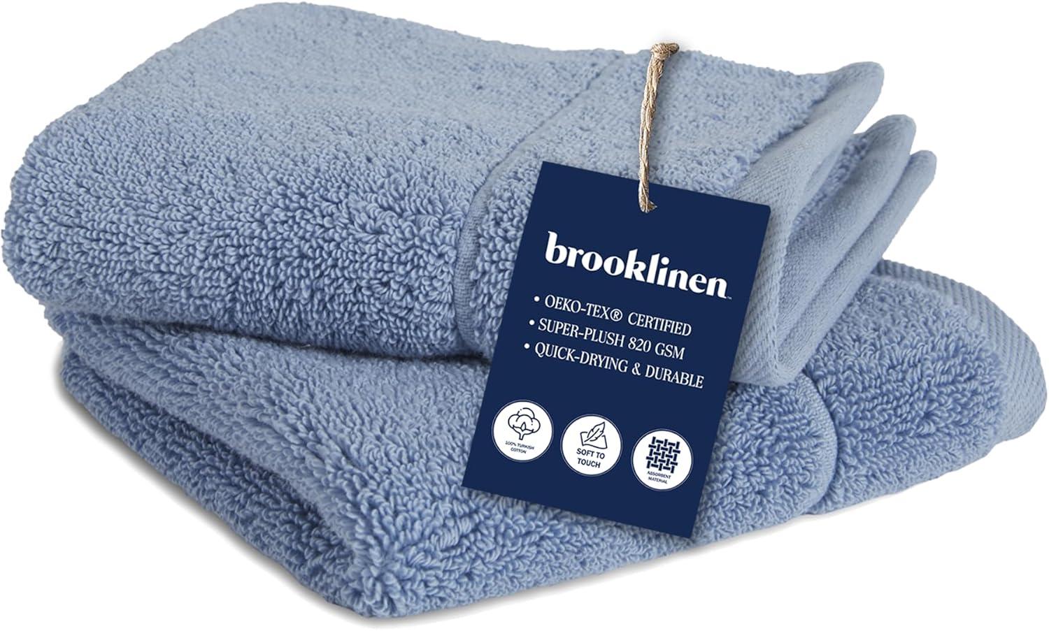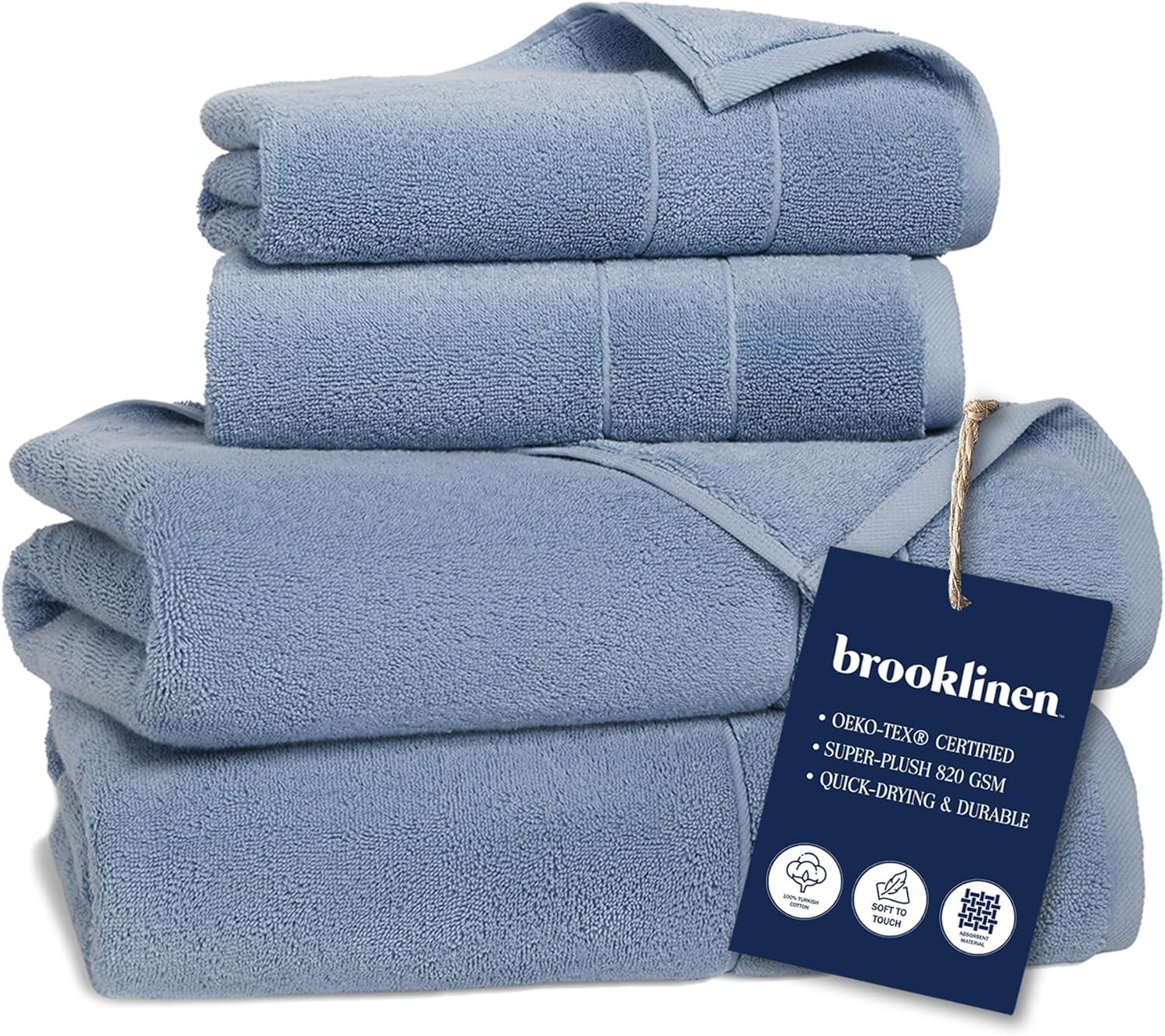 Brooklinen Super-Plush Bath Towel and Hand Towel Set – 2 Bath Towels, 2 Hand Towels – Cotton, Highly Absorbent (White)(Ocean)