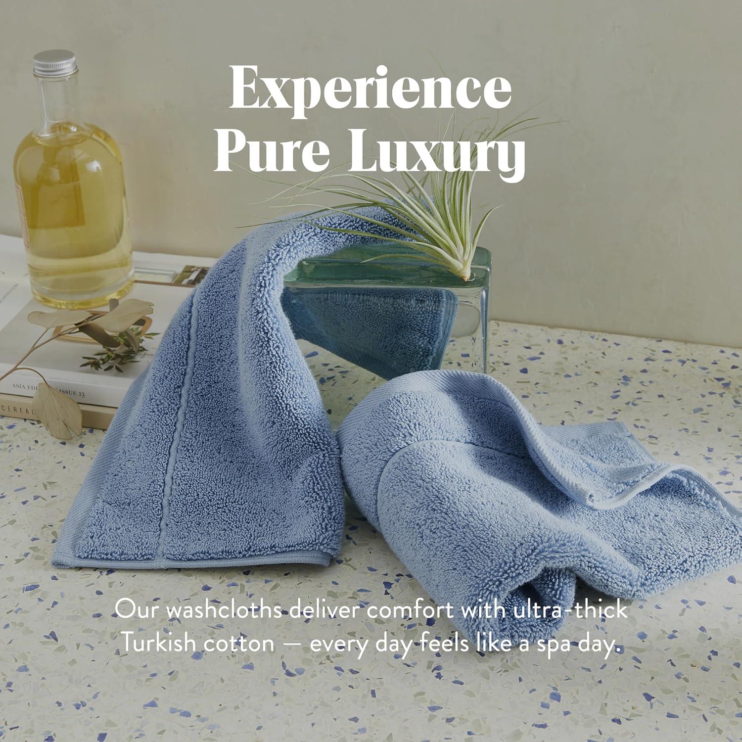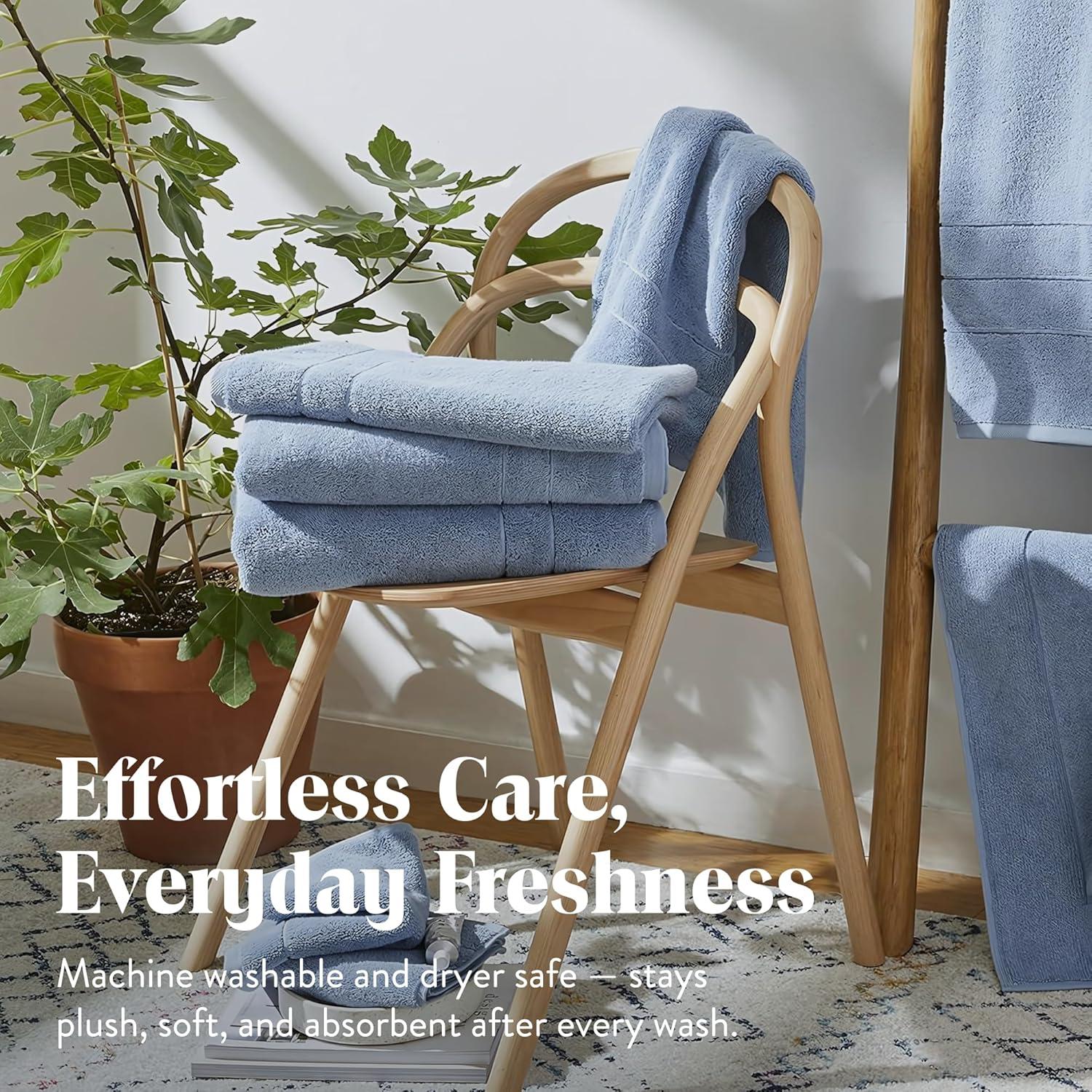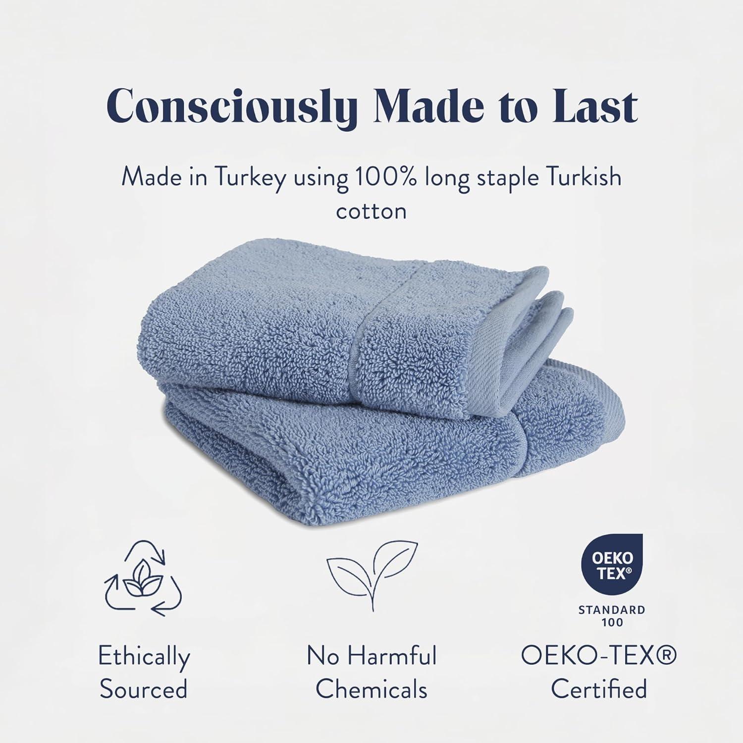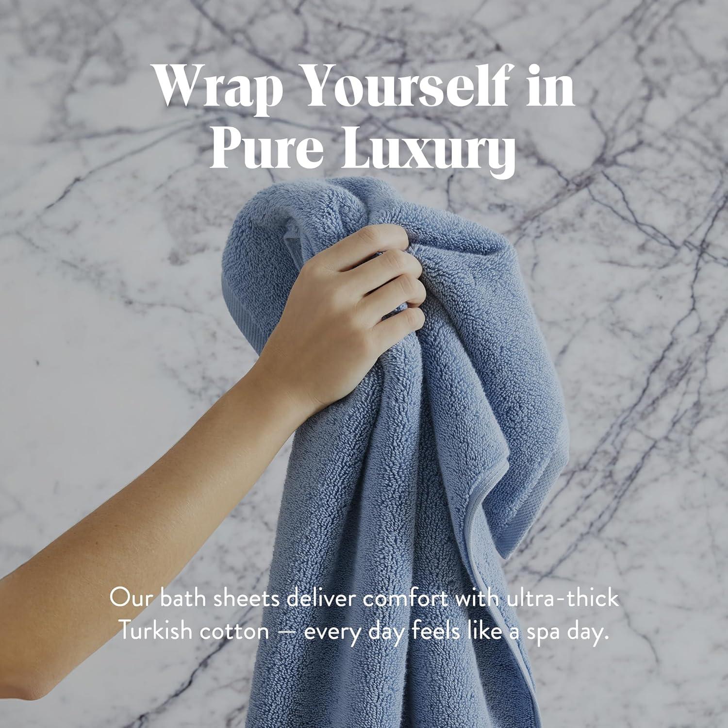Brooklinen Super-Plush Bath Towel and Hand Towel Set – 2 Bath Towels, 2 Hand Towels – Cotton, Highly Absorbent (White)(Ocean)