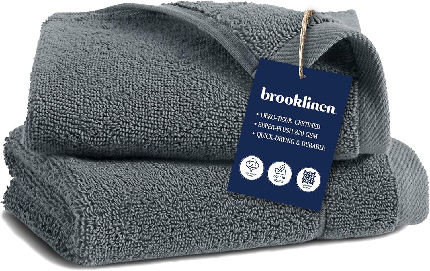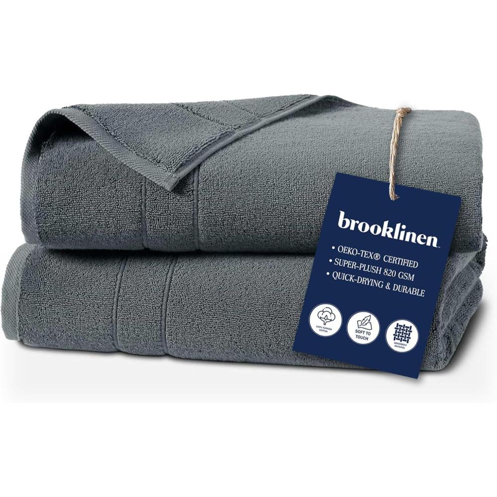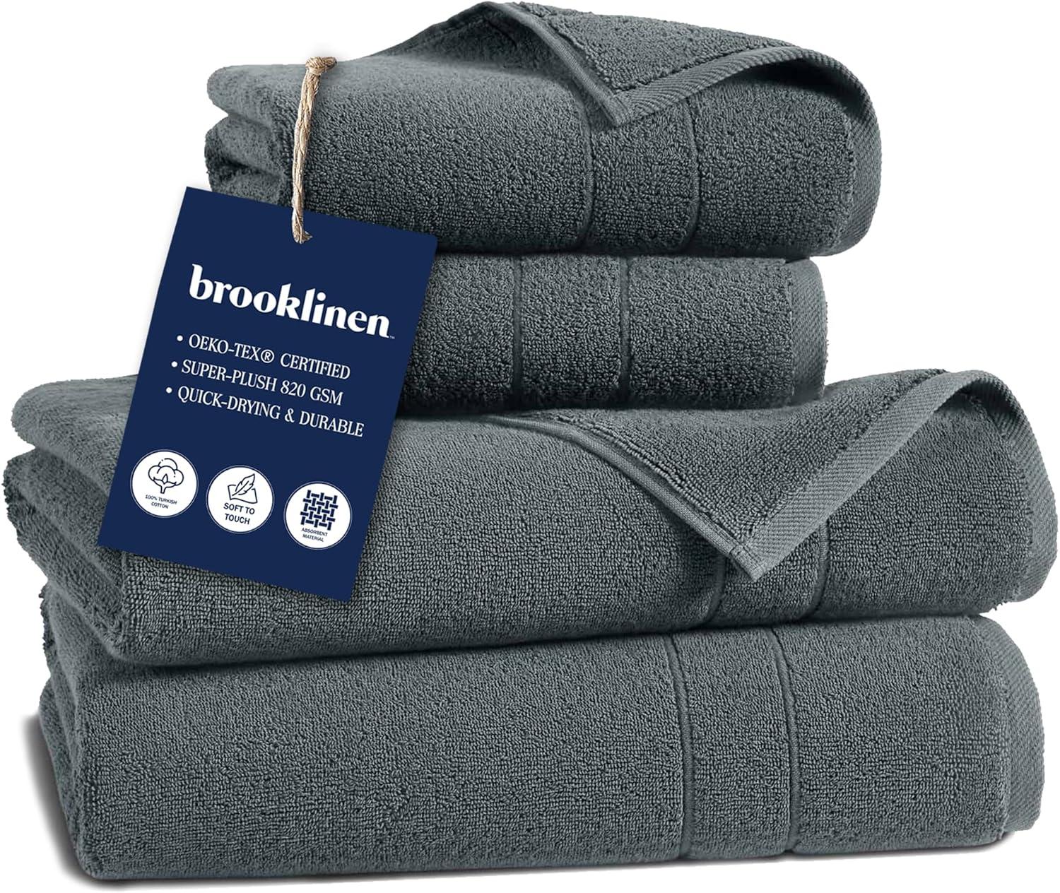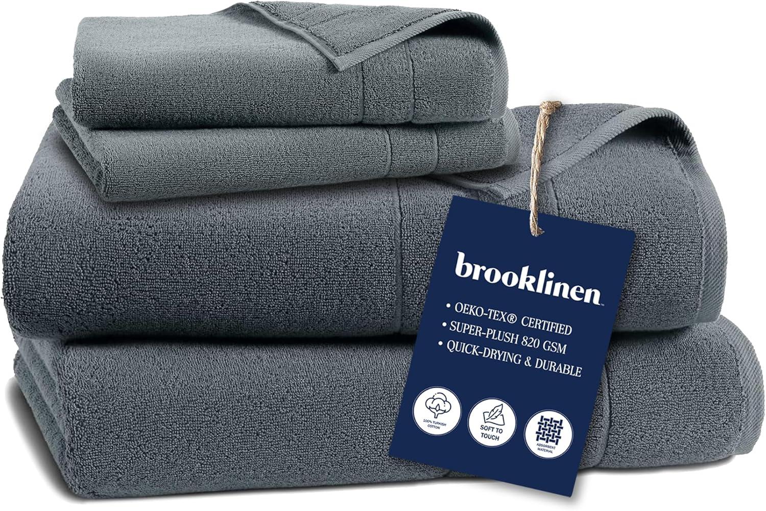 Brooklinen Super-Plush Bath Towel and Hand Towel Set – 2 Bath Towels, 2 Hand Towels – Cotton, Highly Absorbent (White)(Slate)