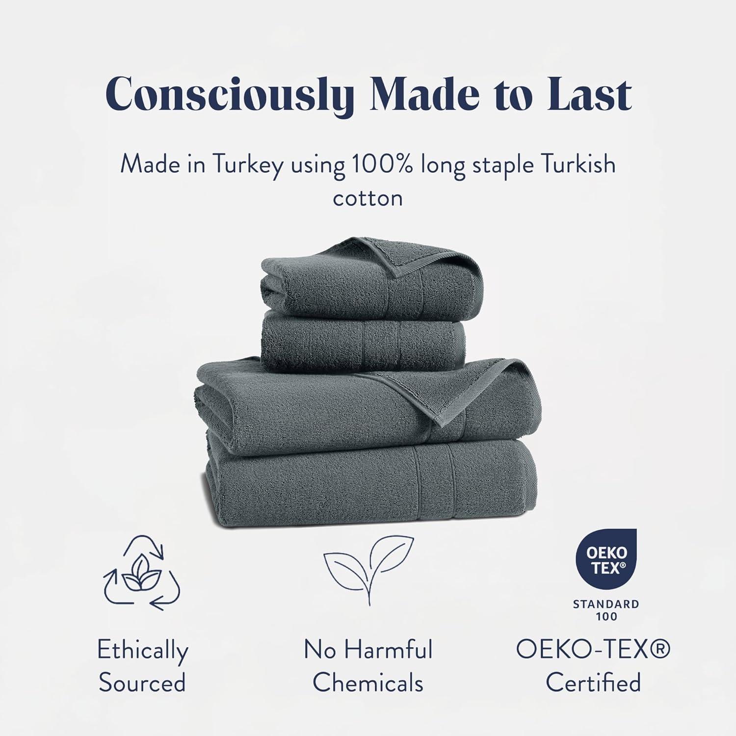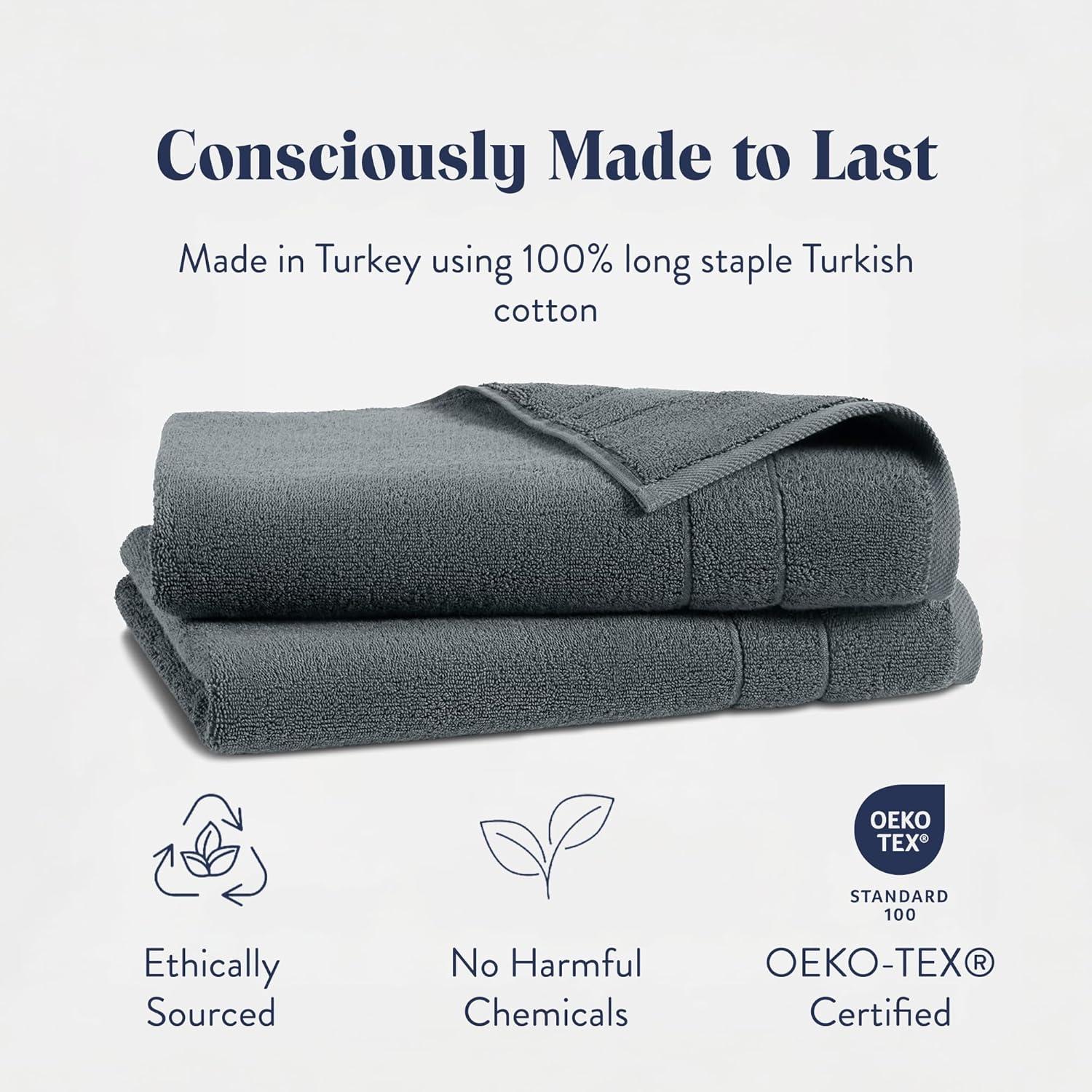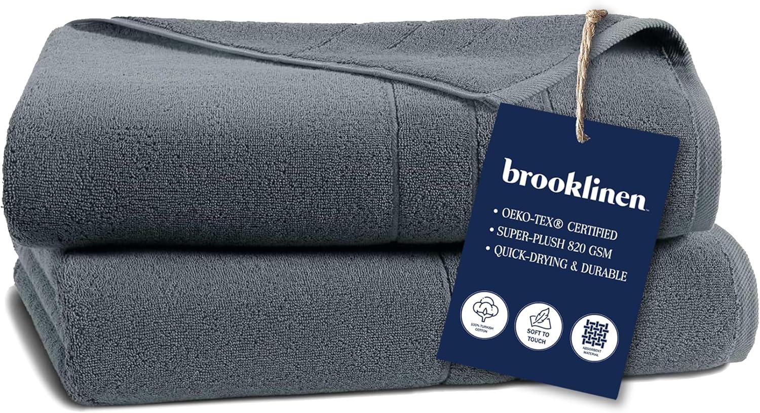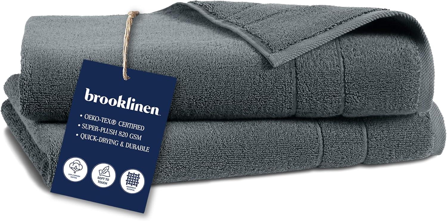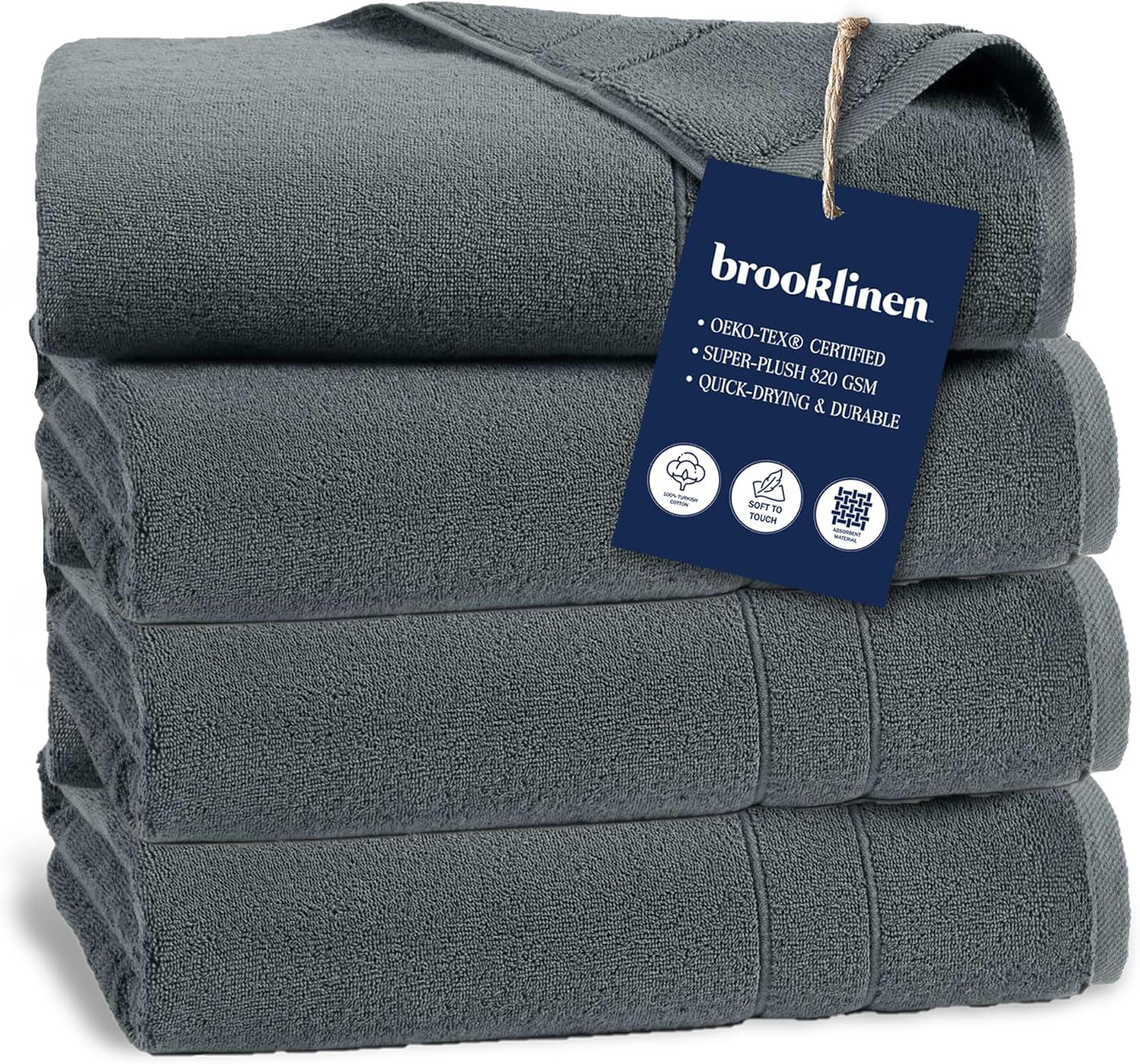 Brooklinen Super-Plush Bath Towel and Hand Towel Set – 2 Bath Towels, 2 Hand Towels – Cotton, Highly Absorbent (White)(Slate)