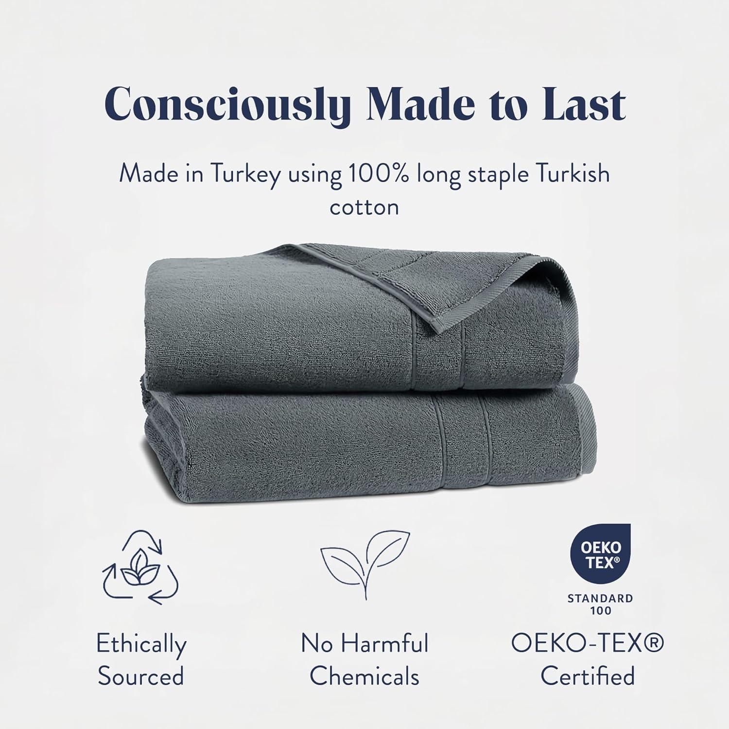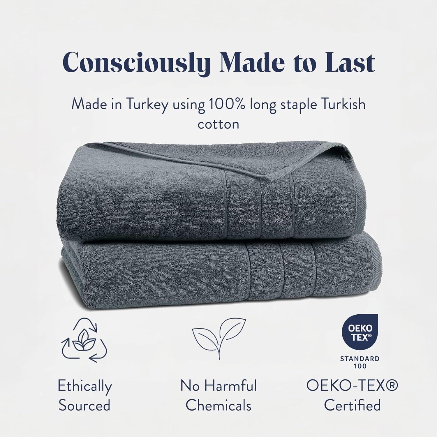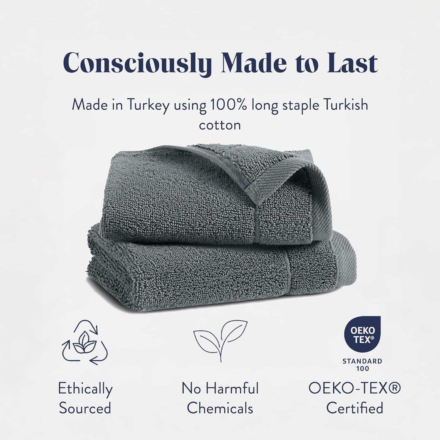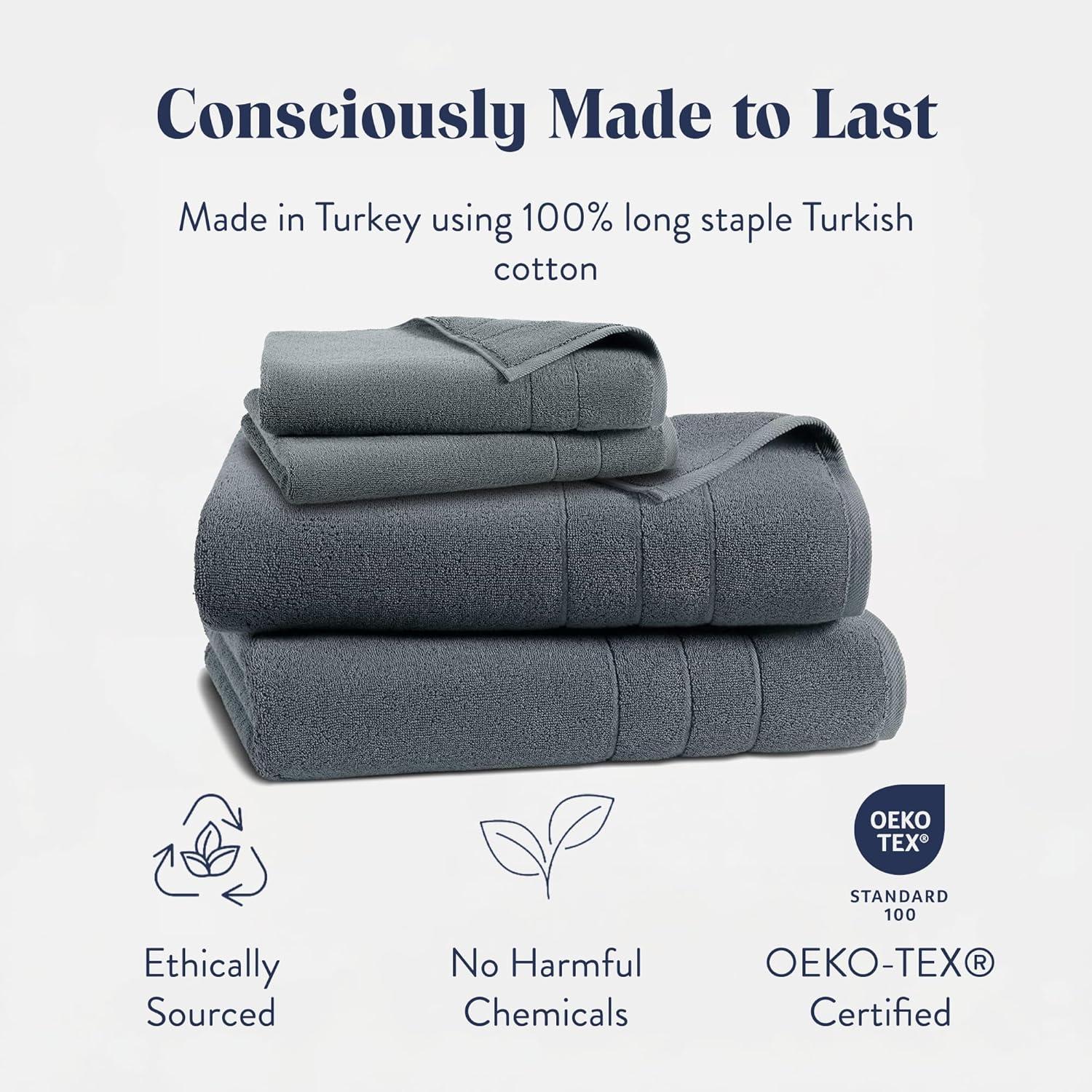 Brooklinen Super-Plush Bath Towel and Hand Towel Set – 2 Bath Towels, 2 Hand Towels – Cotton, Highly Absorbent (White)(Slate)