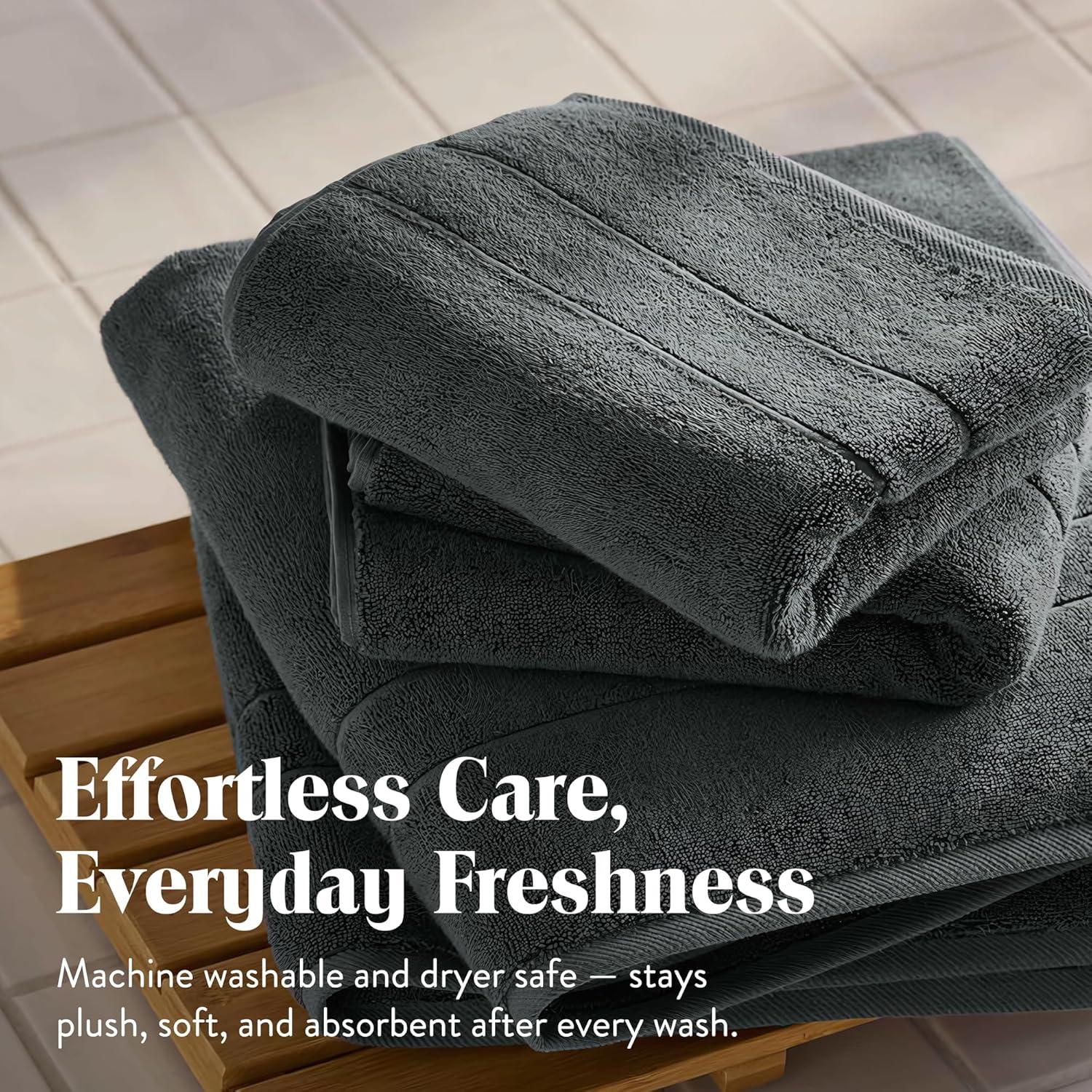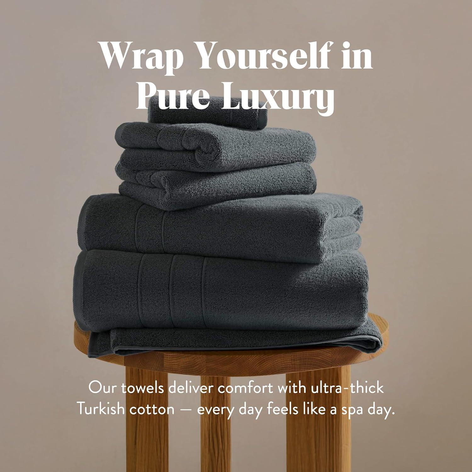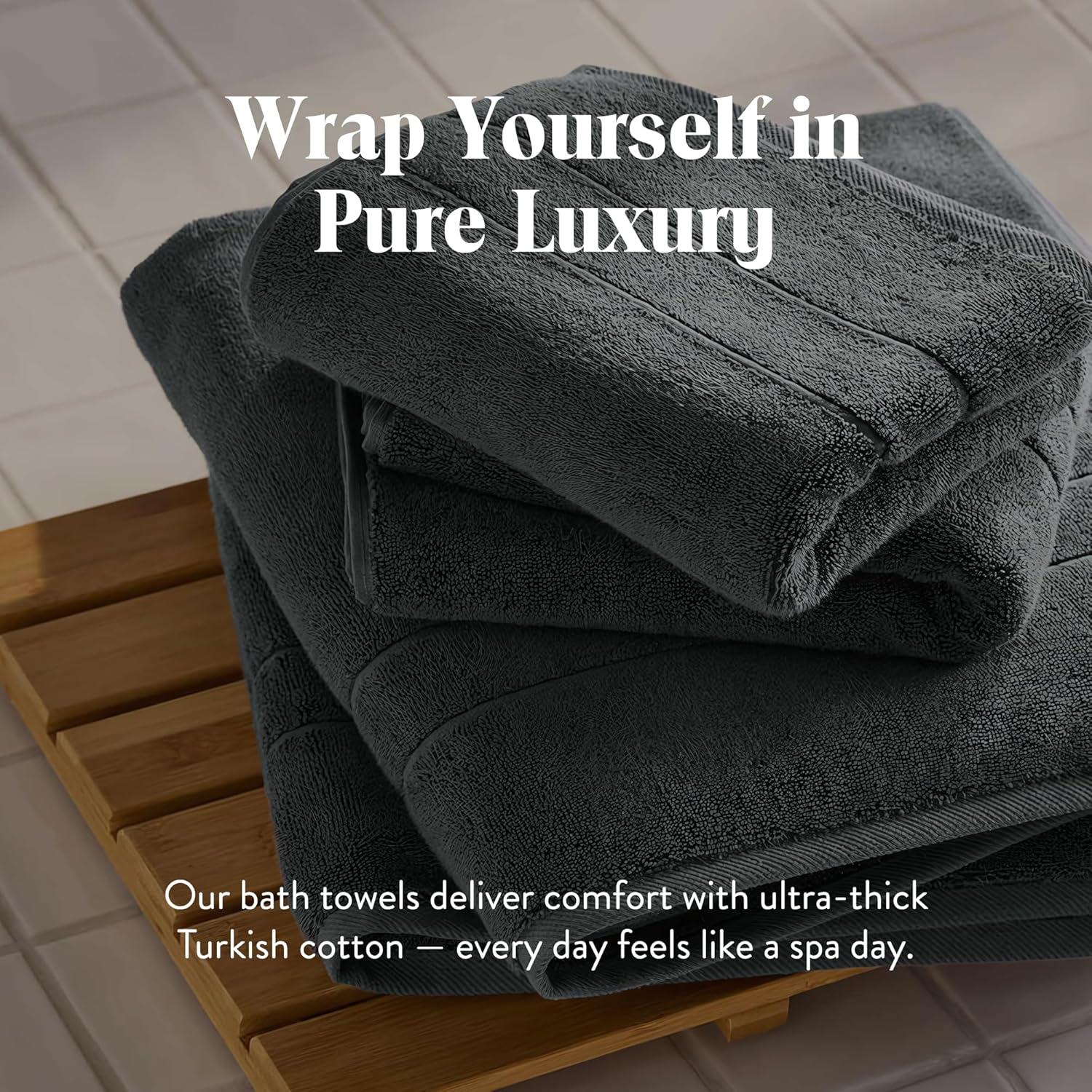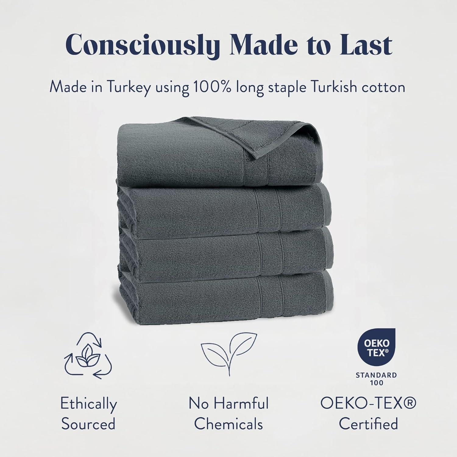 Brooklinen Super-Plush Bath Towel and Hand Towel Set – 2 Bath Towels, 2 Hand Towels – Cotton, Highly Absorbent (White)(Slate)