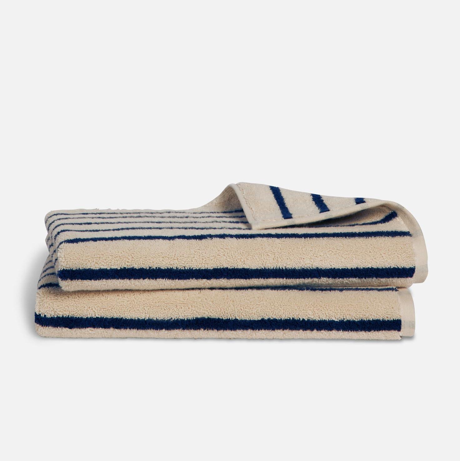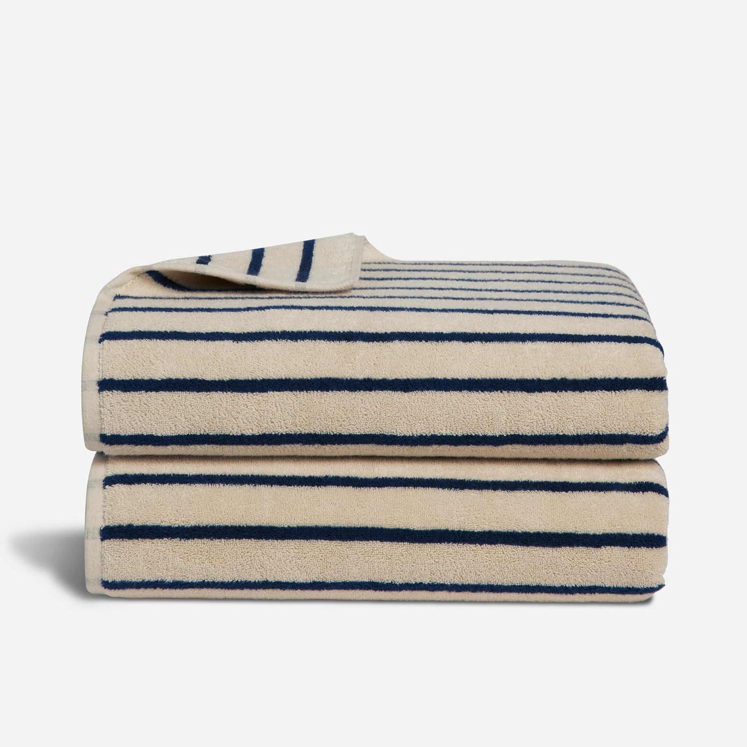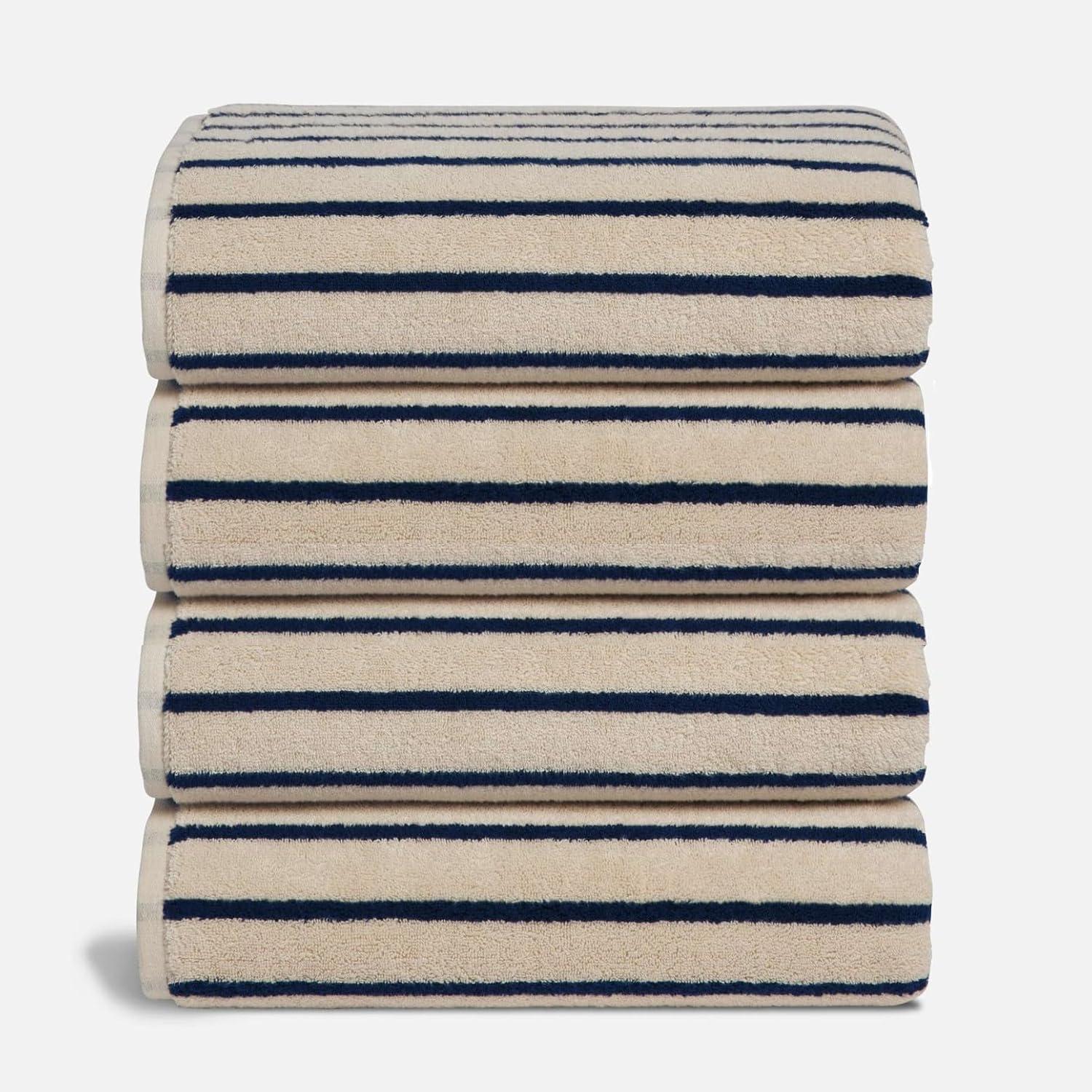 Brooklinen Super-Plush Bath Towel and Hand Towel Set – 2 Bath Towels, 2 Hand Towels – Cotton, Highly Absorbent (White)(Striped Midnight Navy)